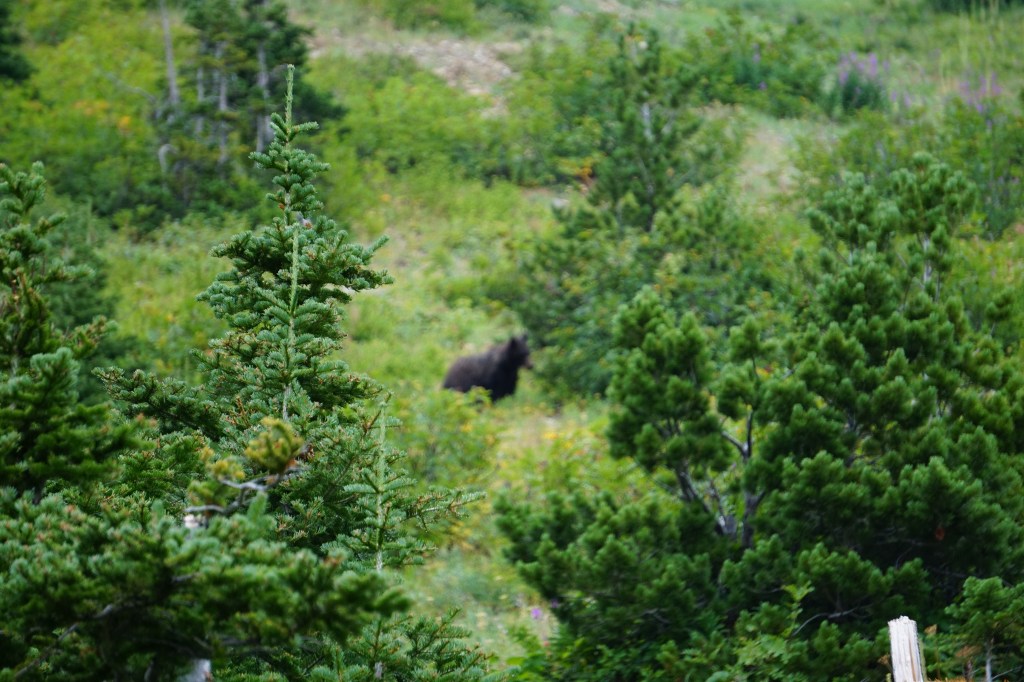 Our first surprise interaction was about 1 mile into the hike. The scenery was beautiful, but of course I was on the lookout for a bear. As soon as I said “Where are all the bears?”, one popped up twenty feet off the trail out of the berry bushes. We were startled and didn’t stick around to get a good picture. On our way back down, we heard a few other groups talk about a similar bear encounter in the same spot, with likely the same bear.