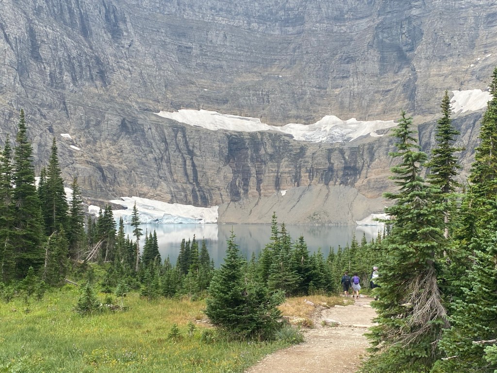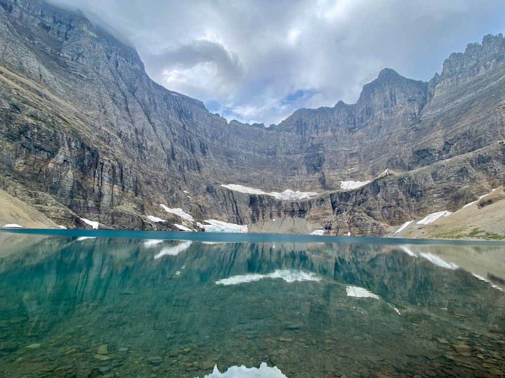 About 4+ miles into the hike, you will begin to get views of the lake. It builds anticipation of what is to come. When you finally arrive at Iceberg Lake you will be impressed. We went in late July so all the “icebergs” had melted for the season. This didn’t stop us from enjoying the amazing lake and the towering rock walls that surround it. Take time to enjoy the lake and give your feet a quick break in the cold water. We ate lunch at the side of the the lake and enjoyed every minute of it. Be prepared that sometimes the wind coming off the water can be chilly. Also be prepared to share the space. The lake can get crowded but we were able to easily find a quiet spot to sit.
