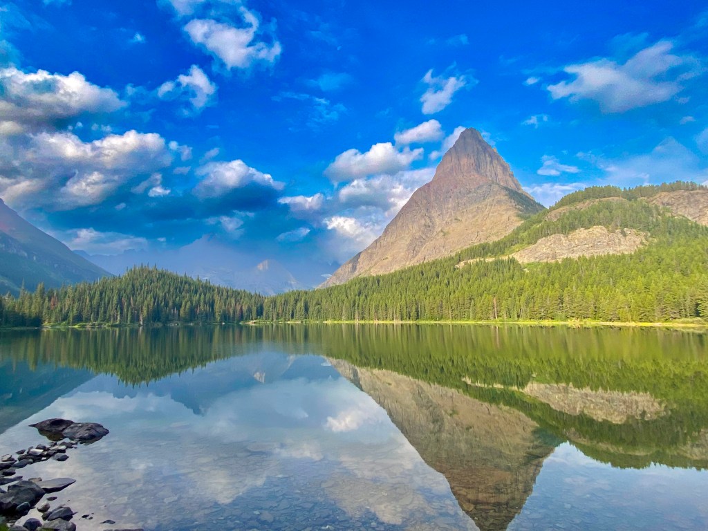 We decided to start at Many Glacier Hotel and follow the Swiftcurrent Nature Trail along the east side of the lake. Here you will get great views of Grinnell Point. If you go in the morning, the sun creates amazing mirror images off of the lake.