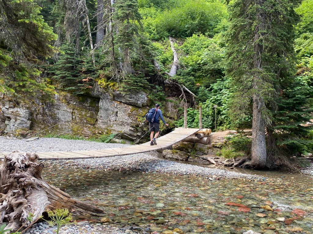 Our first hike in Many Glacier was to Iceberg Lake. You can access the trailhead at the rear of the Swiftcurrent Motor Inn’s parking area. We walked over from our campsite so we didn’t have to worry about parking. This is a longer hike, about 9.6 miles round trip with an elevation gain of 1459 feet. We didn’t mind the elevation gain and enjoyed the hike through some forested cover, open alpine areas, and along ridges. Much of the trail is open, so expect to get some sun.