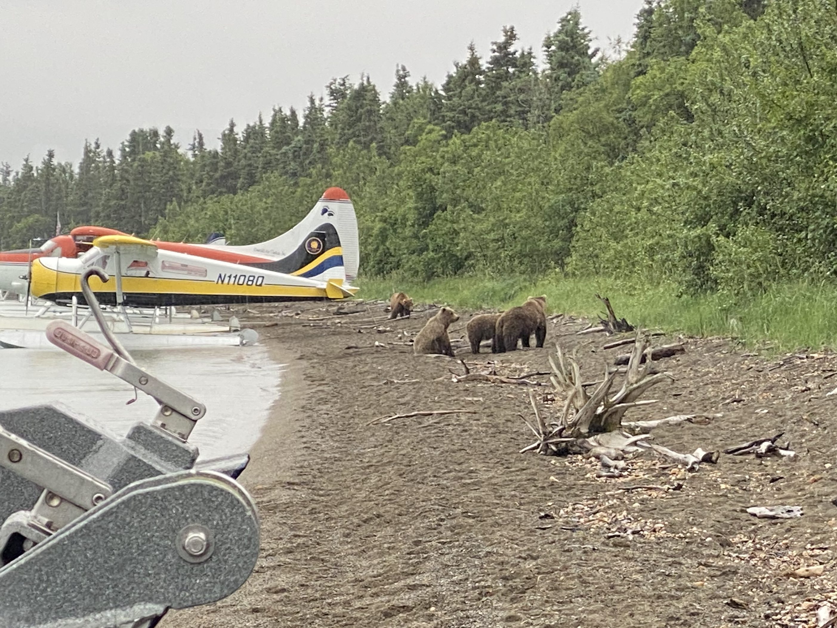 Brooks Camp – The first thing you do when you arrive at Brooks Camp is attend Bear School, led by one of the National Park Rangers. Bear School only takes about 15 minutes and reviews all of the safety expectations and how to act if you encounter a bear on the trails, beach, or at camp. The bears at Brooks are everywhere. There was a family of three right on the beach the first time that we arrived.